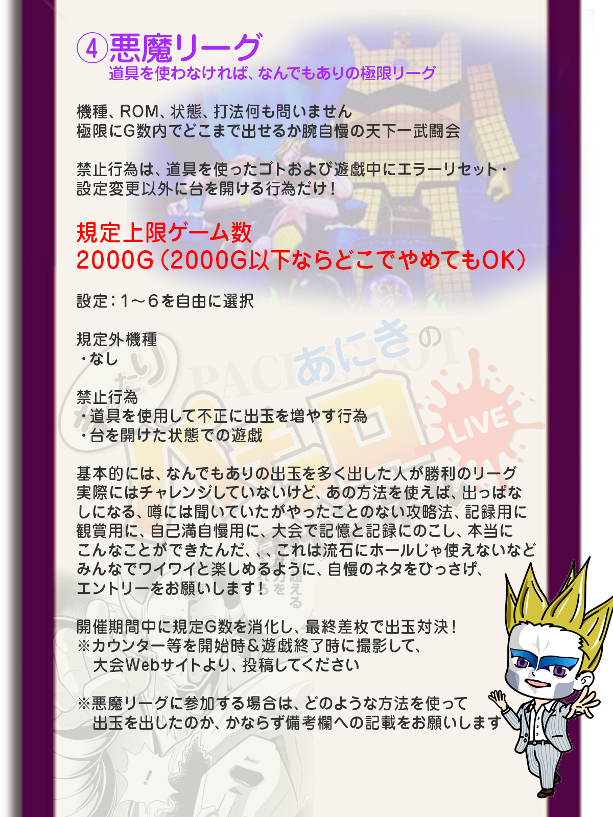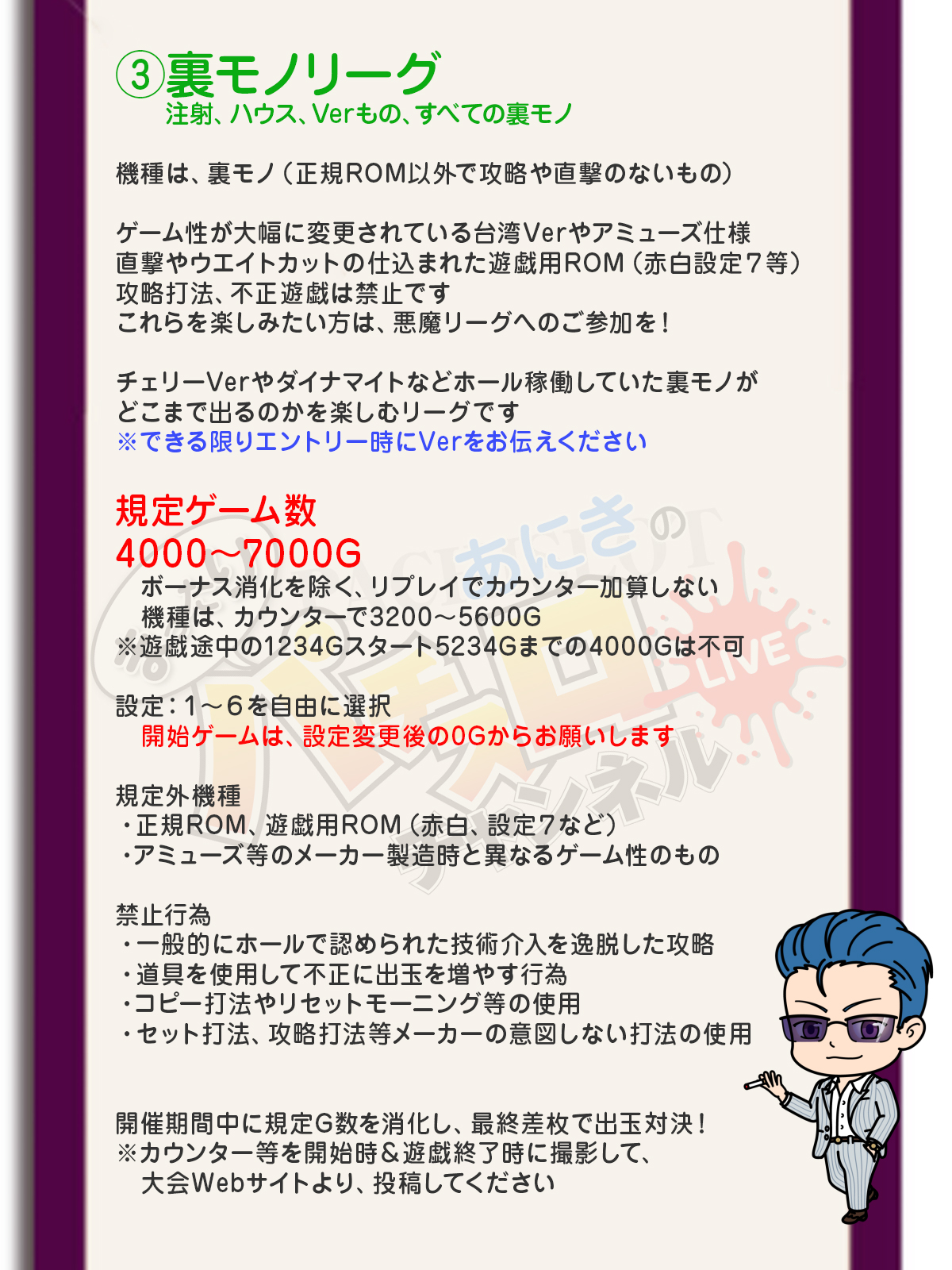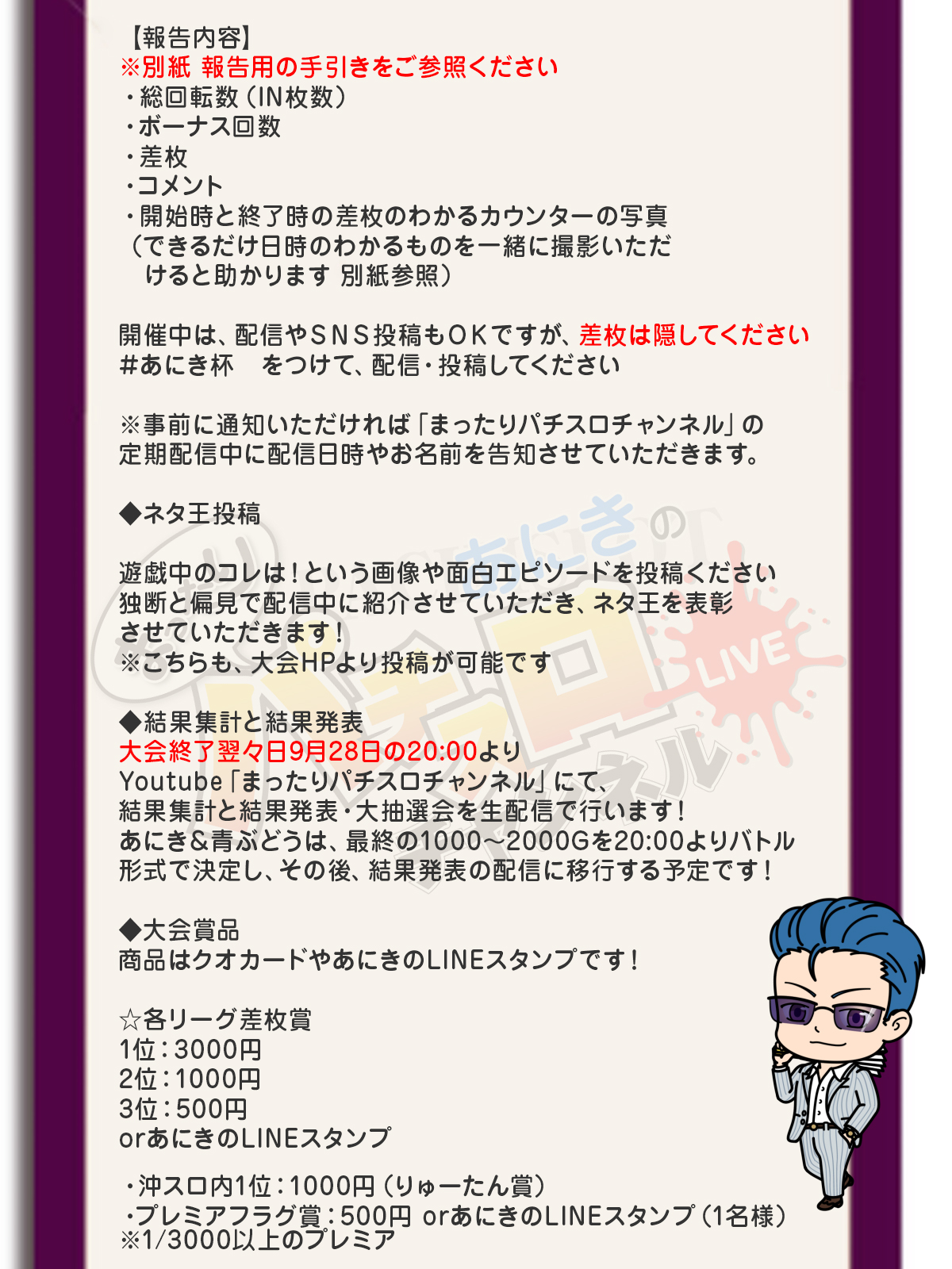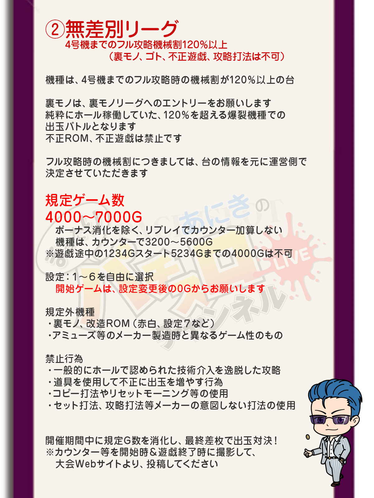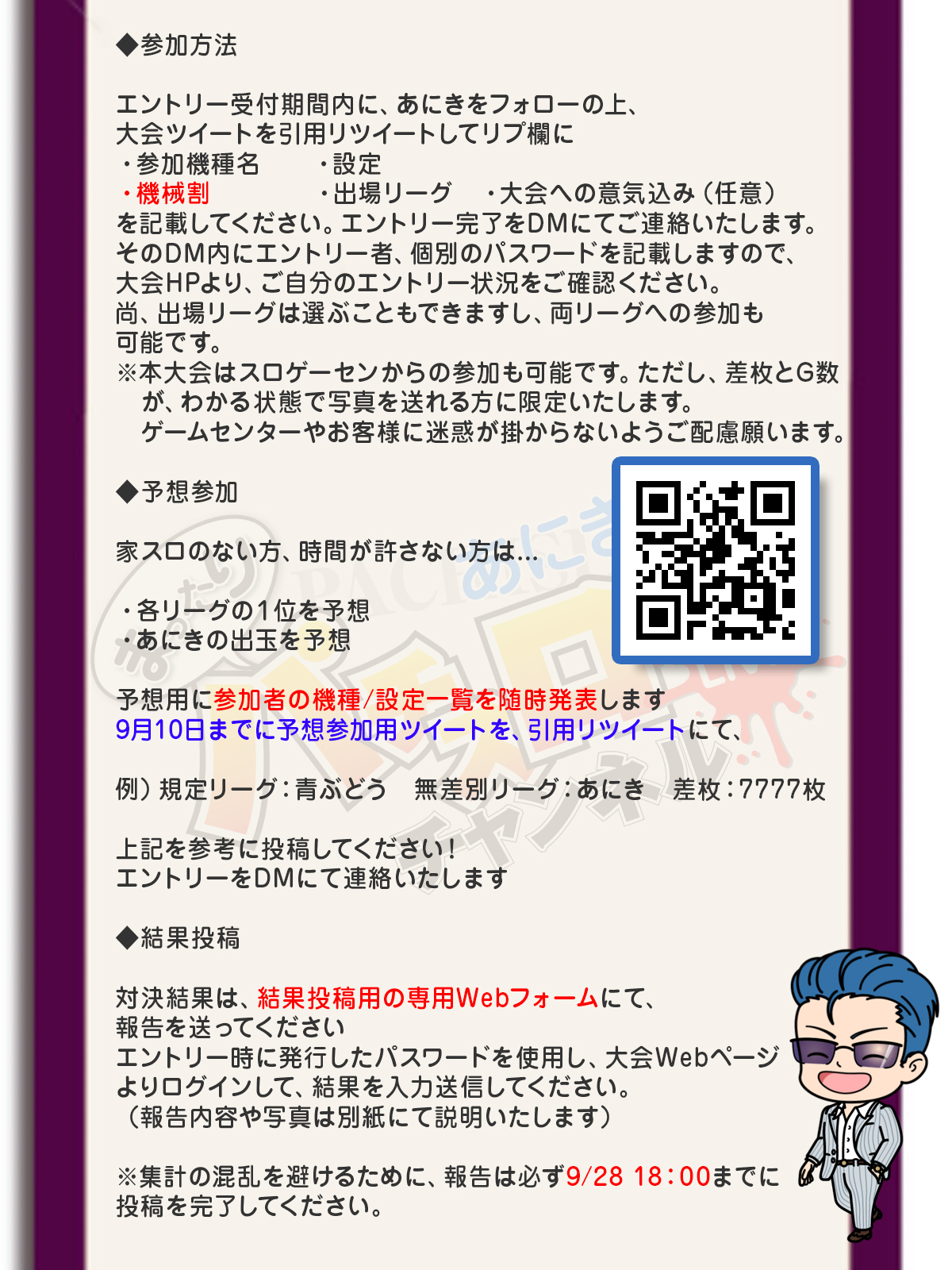 家スロがない、時間がないなど、大会に参加ができない場合は、各リーグの1位とあにきの出玉を予想する、予想枠で参加しよう!